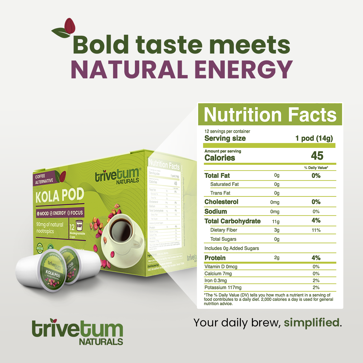 Experience a clean, sustainable boost with our Keurig-compatible pods. This smooth blend of kola nut and roasted barley delivers steady energy without the jitters.